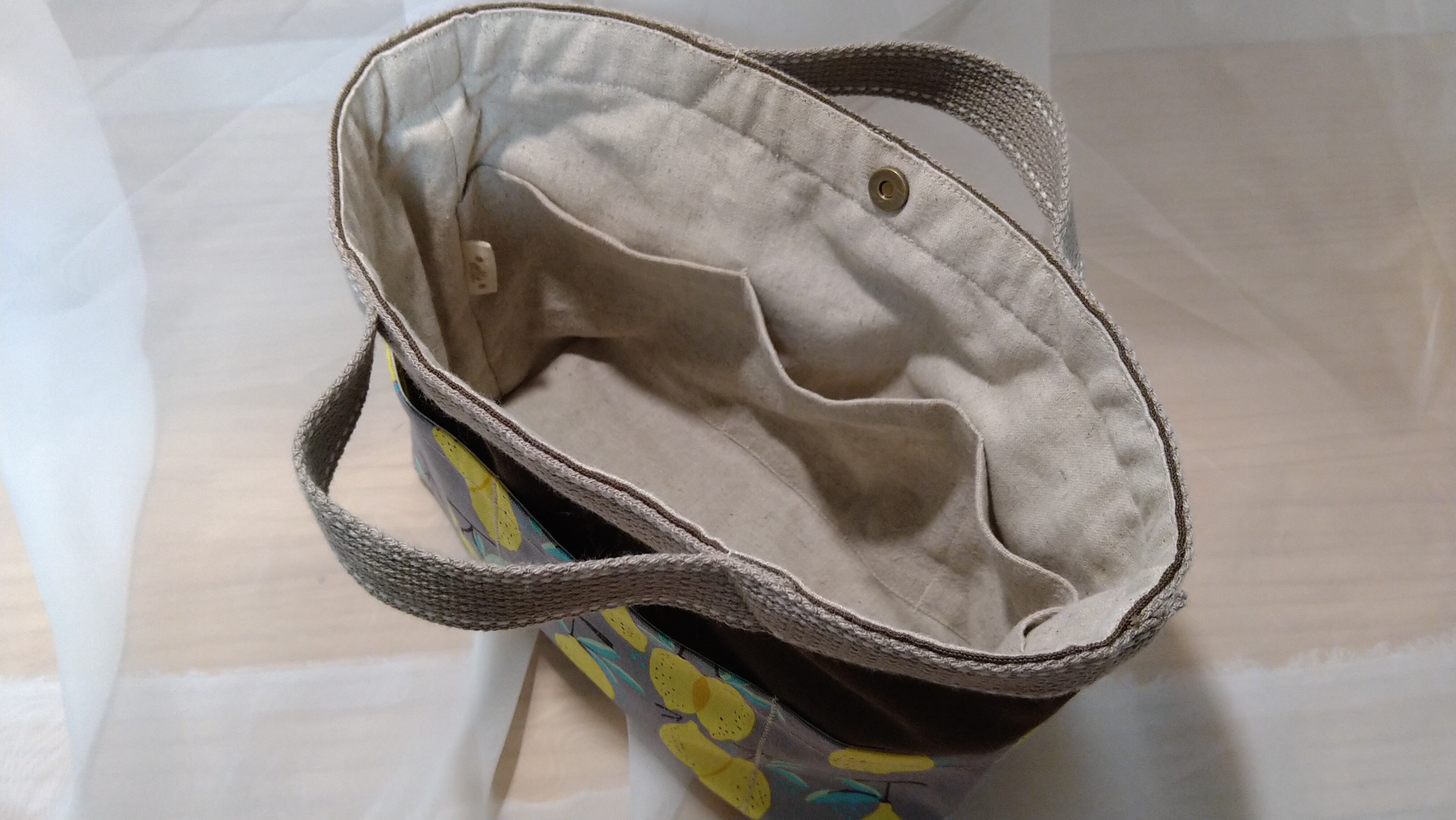 また開口部がクタっとならないように補強に持ち手テープを縁取りしています。