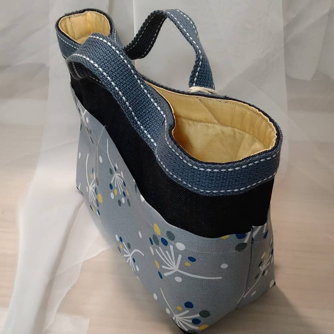 デニム&グレー系 持ち手ブルー(マグネットホック付き)
