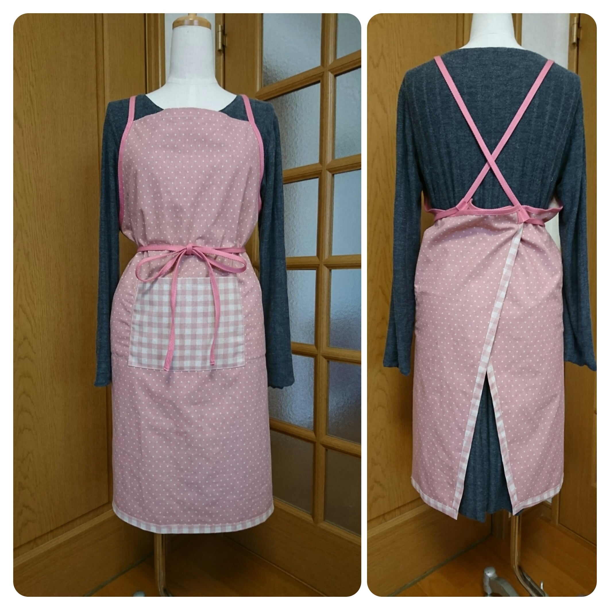 私が首掛けのエプロンが苦手なうえに肩紐がずり落ちる事が多く、なかなか既成ではしっくりくるエプロンが無かったため試行錯誤して作ったオリジナルパターンで製作しています。もちろん私も長年愛用しています♪